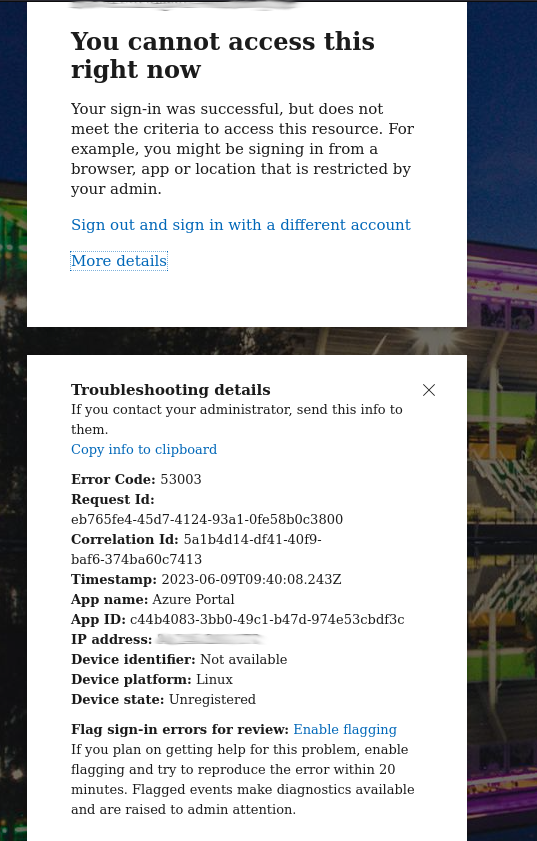 During the assessment CA policies meant that you could only connect to the Azure AD portal from a managed device.