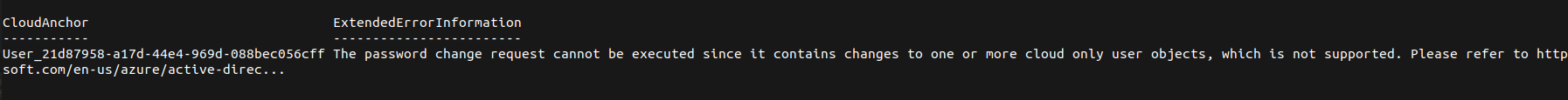 According to both Hacktricks and AADInernals it is possible to use the Sync_* account to change the password for cloud only users, however this appears to no longer be the case, when I attempted this I recieved the following error.